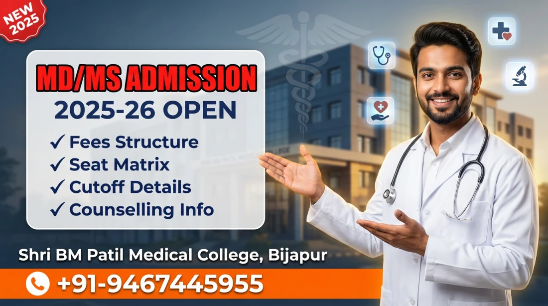 Shri BM Patil Medical College Bijapur Medical PG(MD/MS) : Admission 2025-26 ,Fees Structure ,Seat Matrix ,Courses Offered ,Cutoff ,Counselling ,Contact Details
